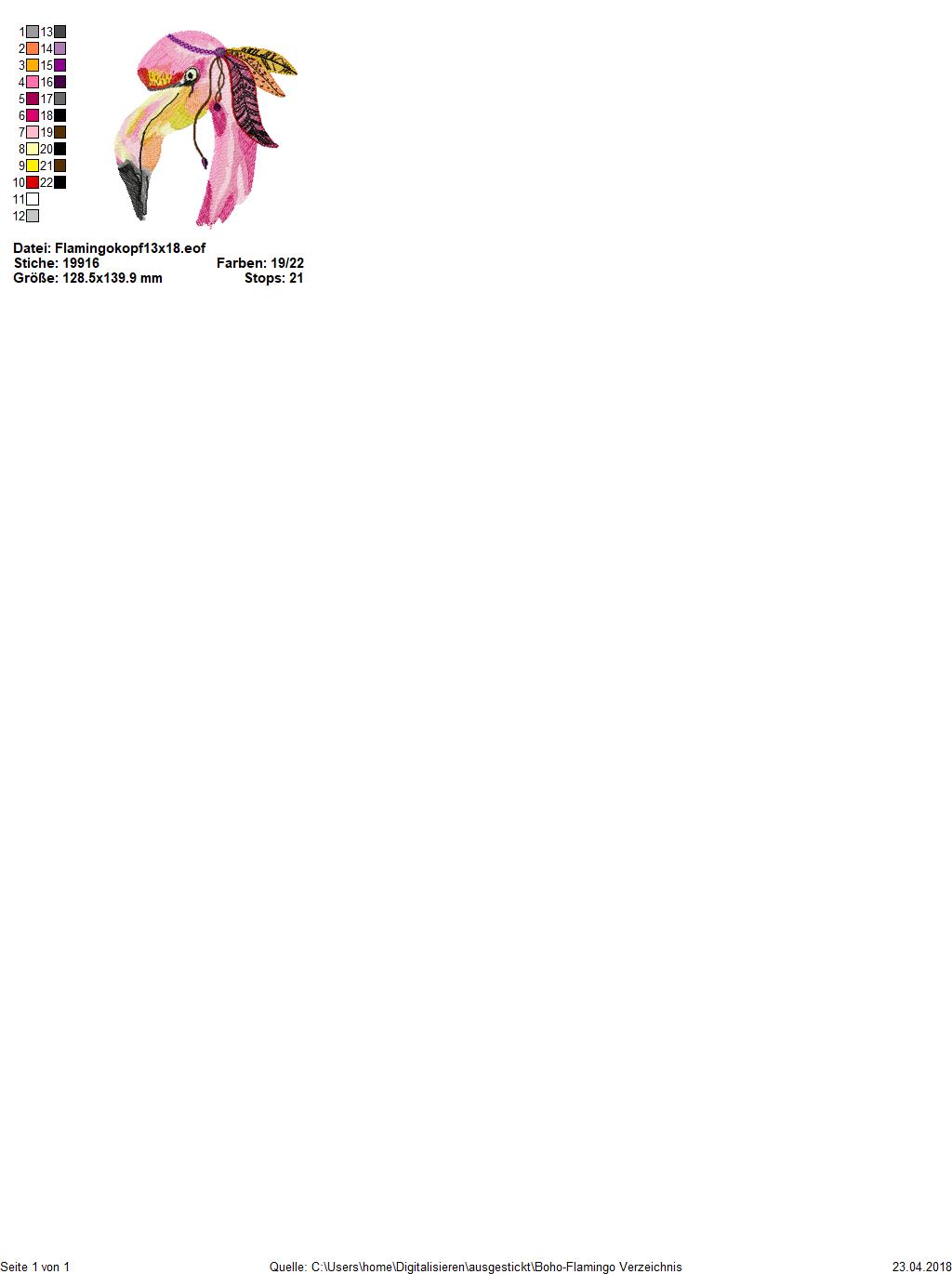 Ein supercooler Flamingo für den Stickrahmen ab 13x18, 16x26, 20x20 und 20x30