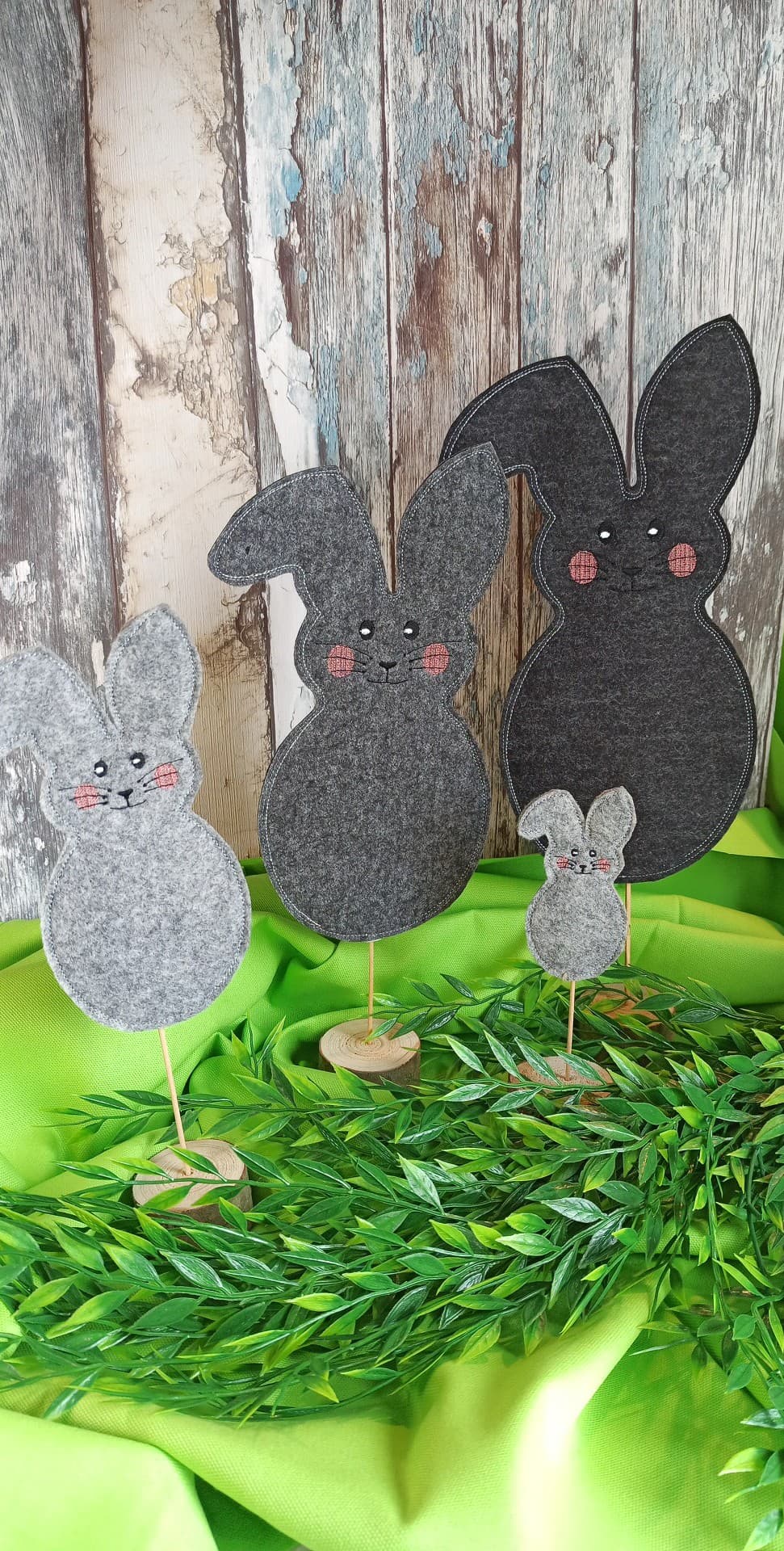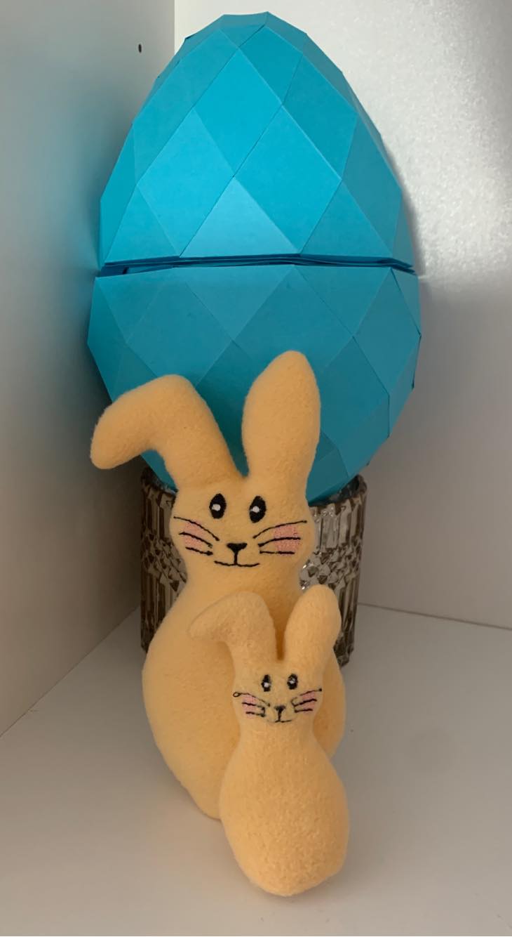Ihr könnt diese Hasis zur Deko verwenden, ITH gestickt auch zum Kuscheln oder das Geschenkhasi zum Verschenken nutzen