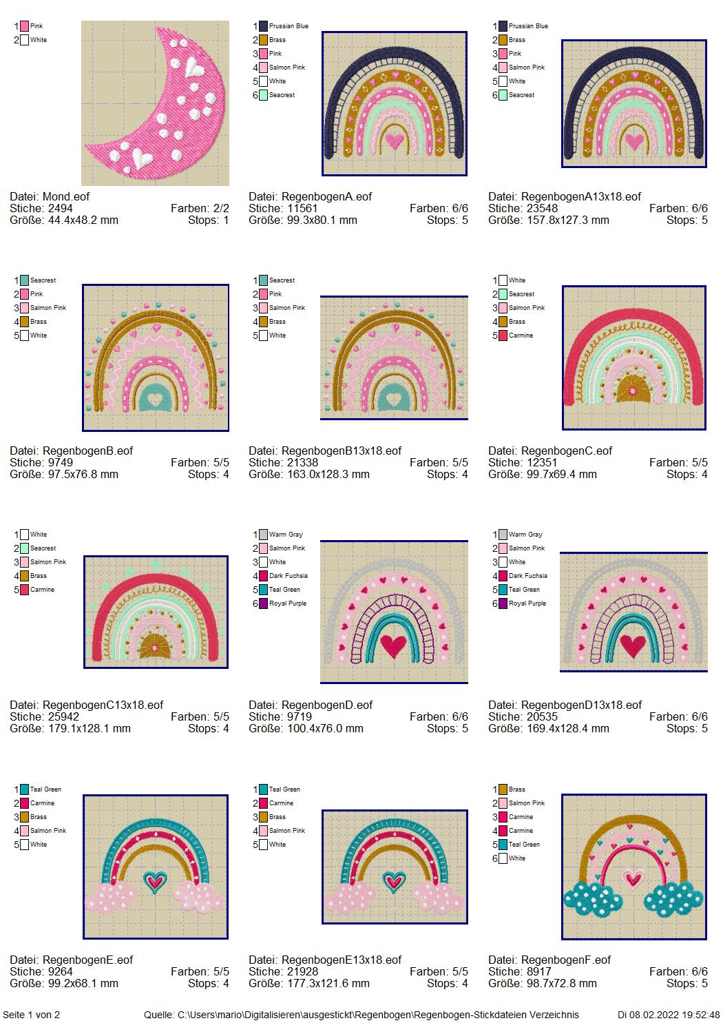 ...viele bunte Regenbogen...die Regenbogen sind für den 10x10 und teilweise für den 13x18er Rahmen. Wenn du eine andere Grösse brauchst, darfst du mich gerne jederzeit anschreiben, ich bin gerne behilflich.