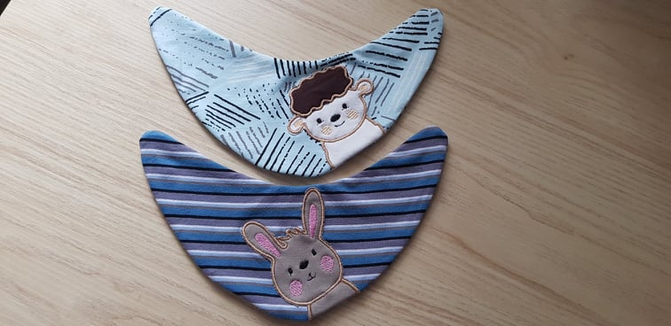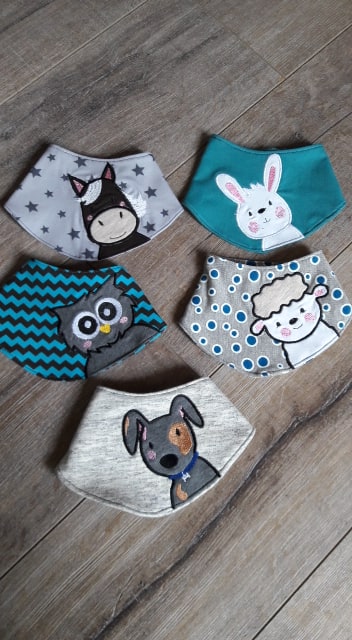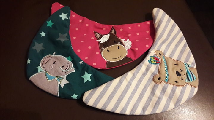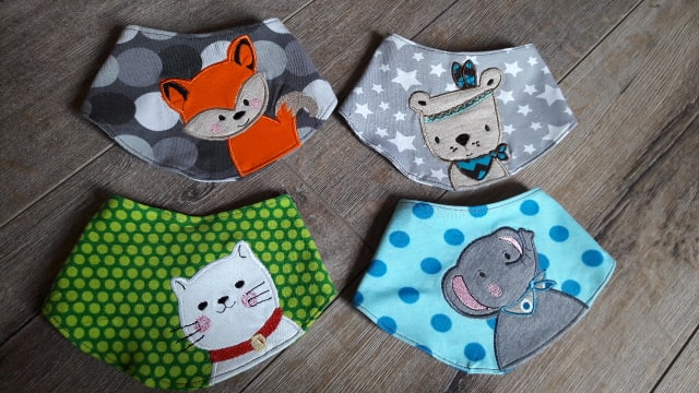 So süsse Halstücher für Babys in verschiedenen Grössen. Ihr könnt die Halstücher in klein im 16x26er Rahmen sticken, dann im 18x30er Rahmen und auch im 20x36er Rahmen in gross.