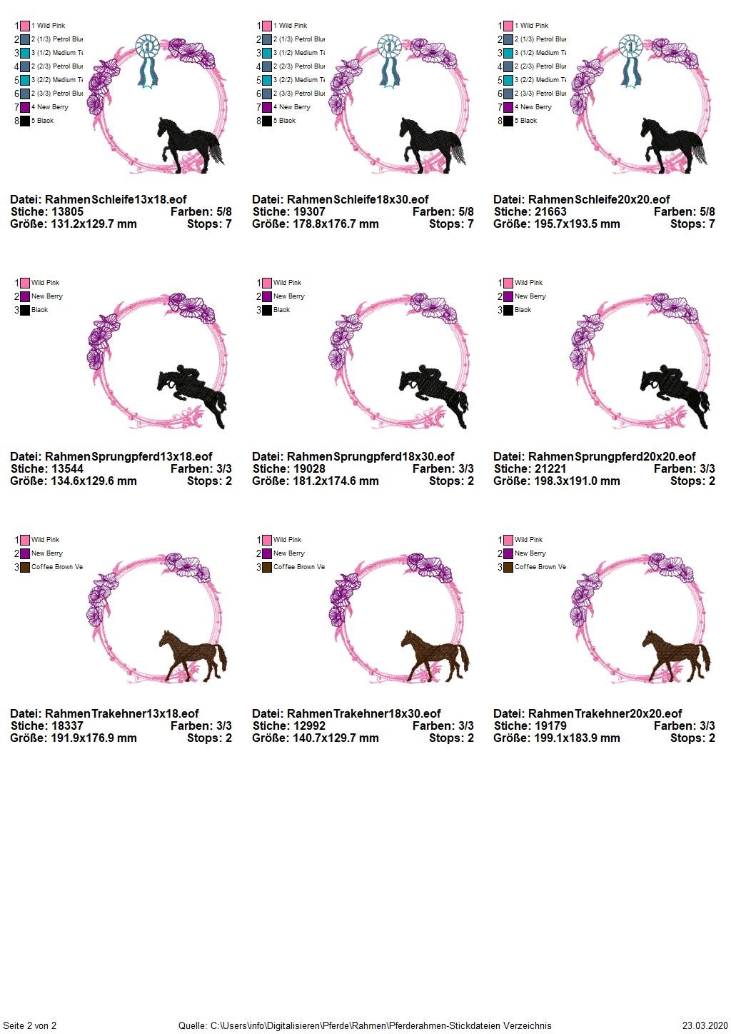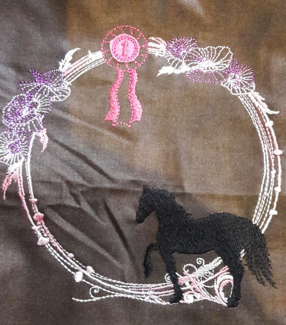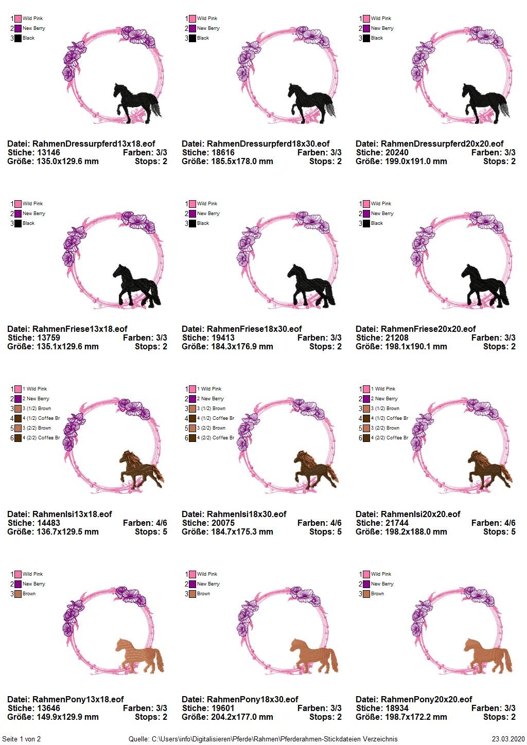Eine schöne Datei mit der man viele Projekte verzieren kann. Abschwitzdecken z.B. oder Kinderpullis, Kissen, etc. Ab dem 13x18er Rahmen bis 18x30er Rahmen verschiedene Grössen und verschiedene Pferdemotive.