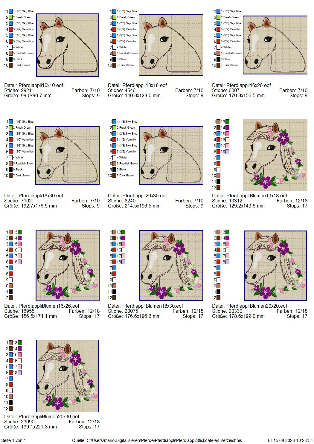 Eine süsse Appli, Pferdekopf, eine komplett gestickte Variante und eine Variante bei der Du z.B. mit Wolle noch eine schöne Mähne dazuzaubern kannst. Ab 10x10er Rahmen bis 20x30. Wenn das passende Format nicht dabei ist, dann einfach melden, ich helfe gerne weiter.