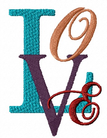 Einmal LOVE ausgestickt, für Bilder, Kissen, etc.