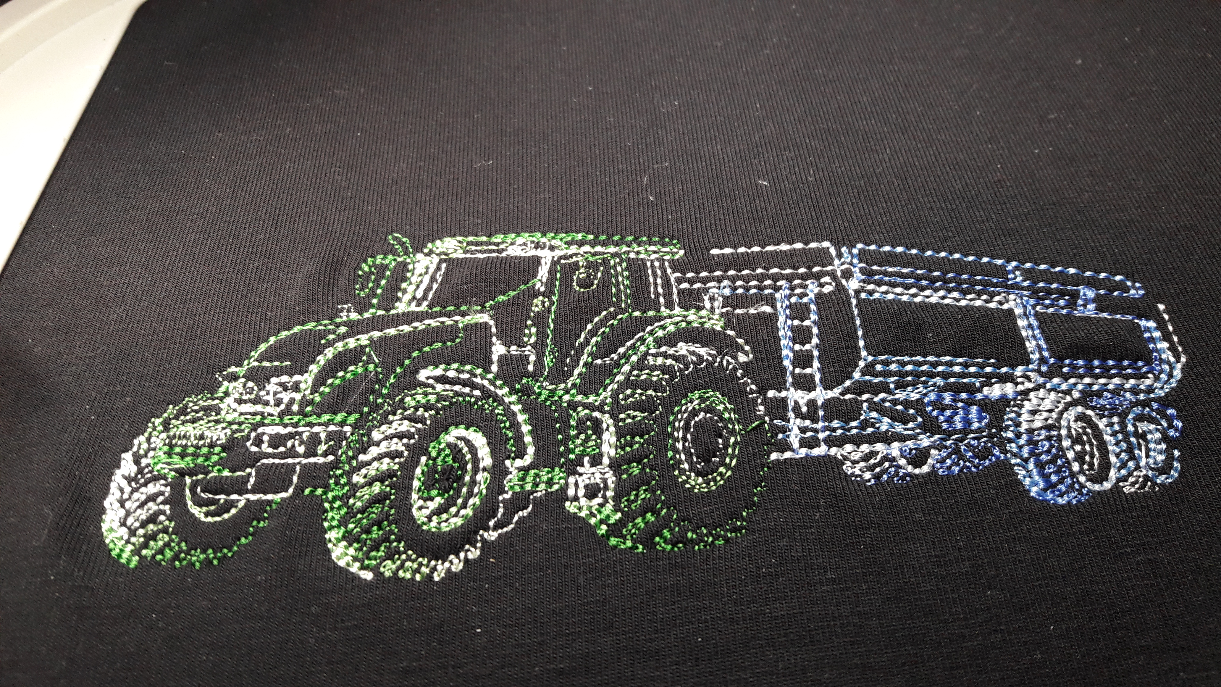 Ihr erhaltet hier den Traktor 2 incl. Anhänger in verschiedenen Grössen. Die kleinste Grösse passt in den 13x18er Rahmen, der ganz grosse ist für den 18x30er Rahmen. Gerne bekommt Ihr auch weitere Grössen auf Wunsch. Es handelt sich hierbei um eine Datei für die Stickmaschine, nicht um ein fertig gesticktes Motiv.