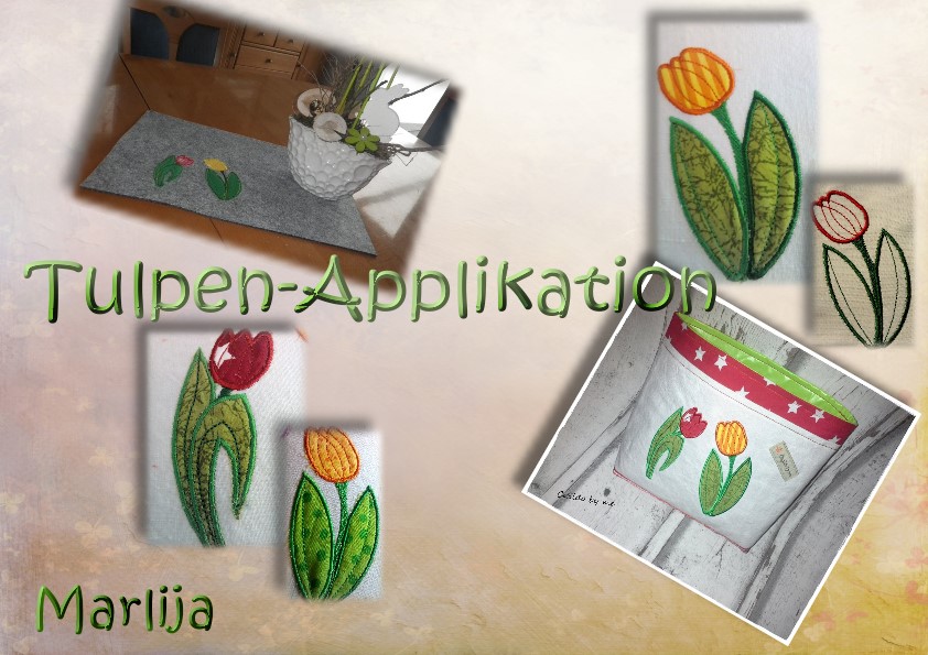 Schöne Tulpen als Applikation ab 10x10er Rahmen.