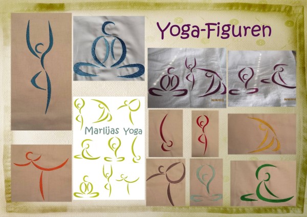 Yoga Figuren, einmal ausgestickt und einmal als Umrissdatei für alle Yoga-Fans